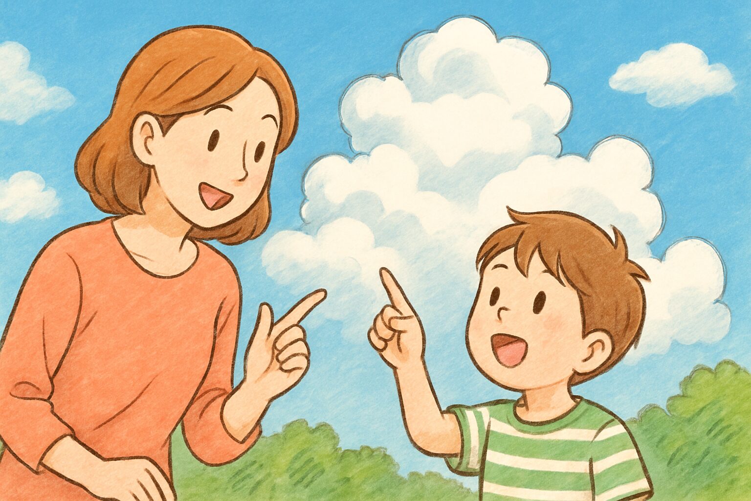 子どもが指さした雲に、そっと一言添えるだけでも十分。