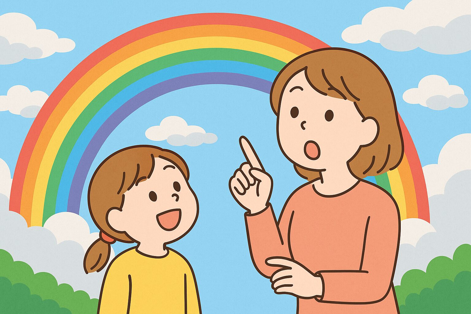虹を見つけた日は、子どもと一緒にちょっとだけ空を見上げる時間が生まれますよね。でも「なんで七色なの?」と聞かれると、答えに少し困ってしまうこともあります。私もある日、保育園の帰り道で娘にそう聞かれて、曖昧な返事しかできずモヤモヤしたことがありました。